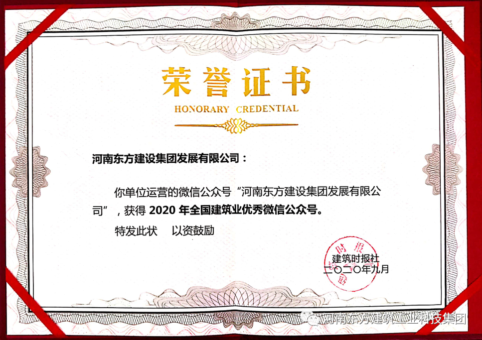 河南東方建設(shè)集團(tuán)榮獲“2020年全國建筑業(yè)優(yōu)秀微信公眾號”