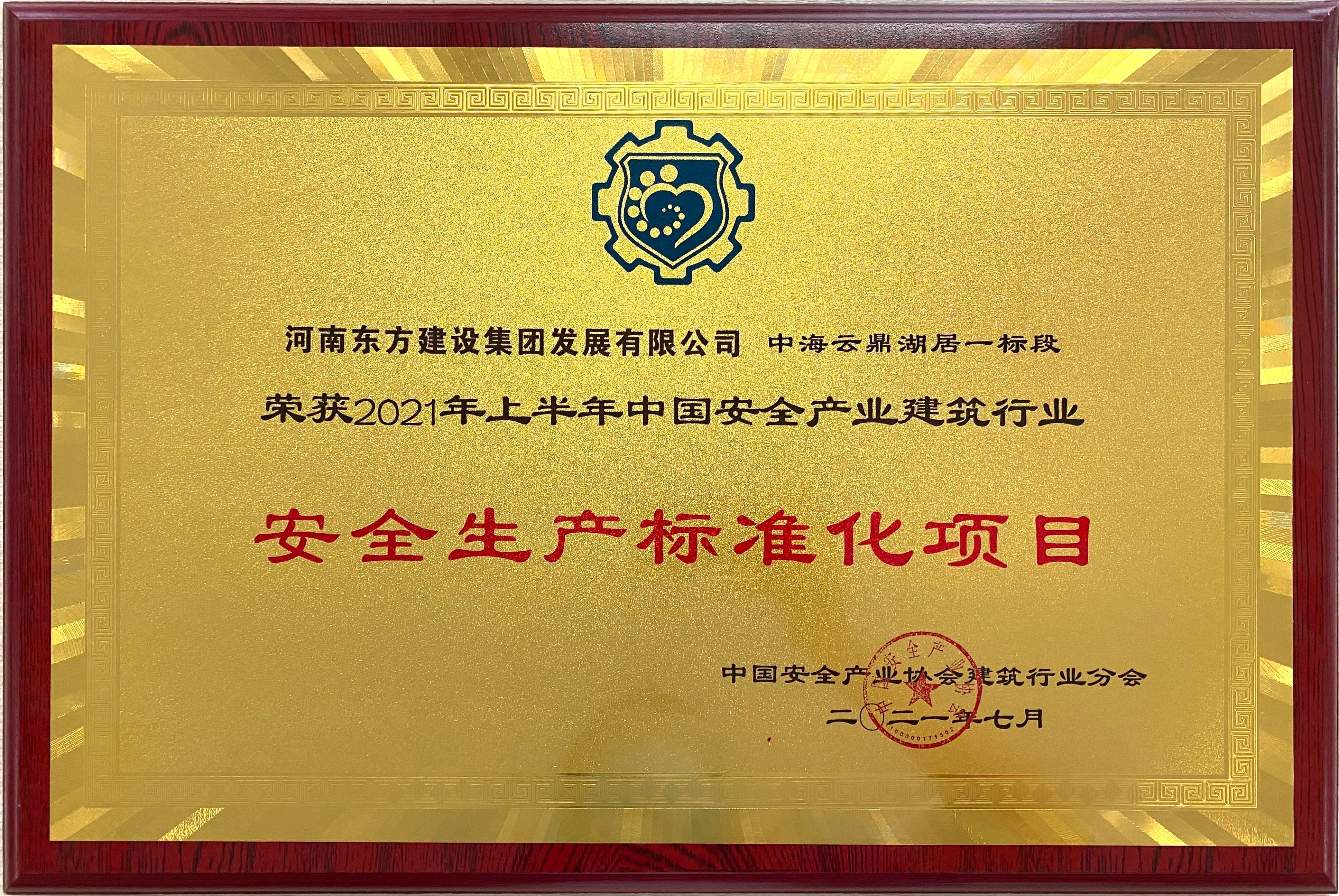 近日,從中國建筑產(chǎn)業(yè)協(xié)會建筑行業(yè)分會傳來喜訊,河南東方建設集團發(fā)展有限公司承建的鄭州中海云鼎湖居一標段,獲評2021年上半年中國安全產(chǎn)業(yè)建筑行業(yè)安全生產(chǎn)標準化項目。