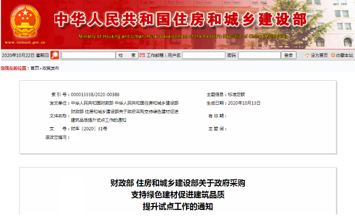 財政部住房和城鄉(xiāng)建設(shè)部關(guān)于政府采購支持綠色建材促進(jìn)建筑品質(zhì)提升試點工作的通知