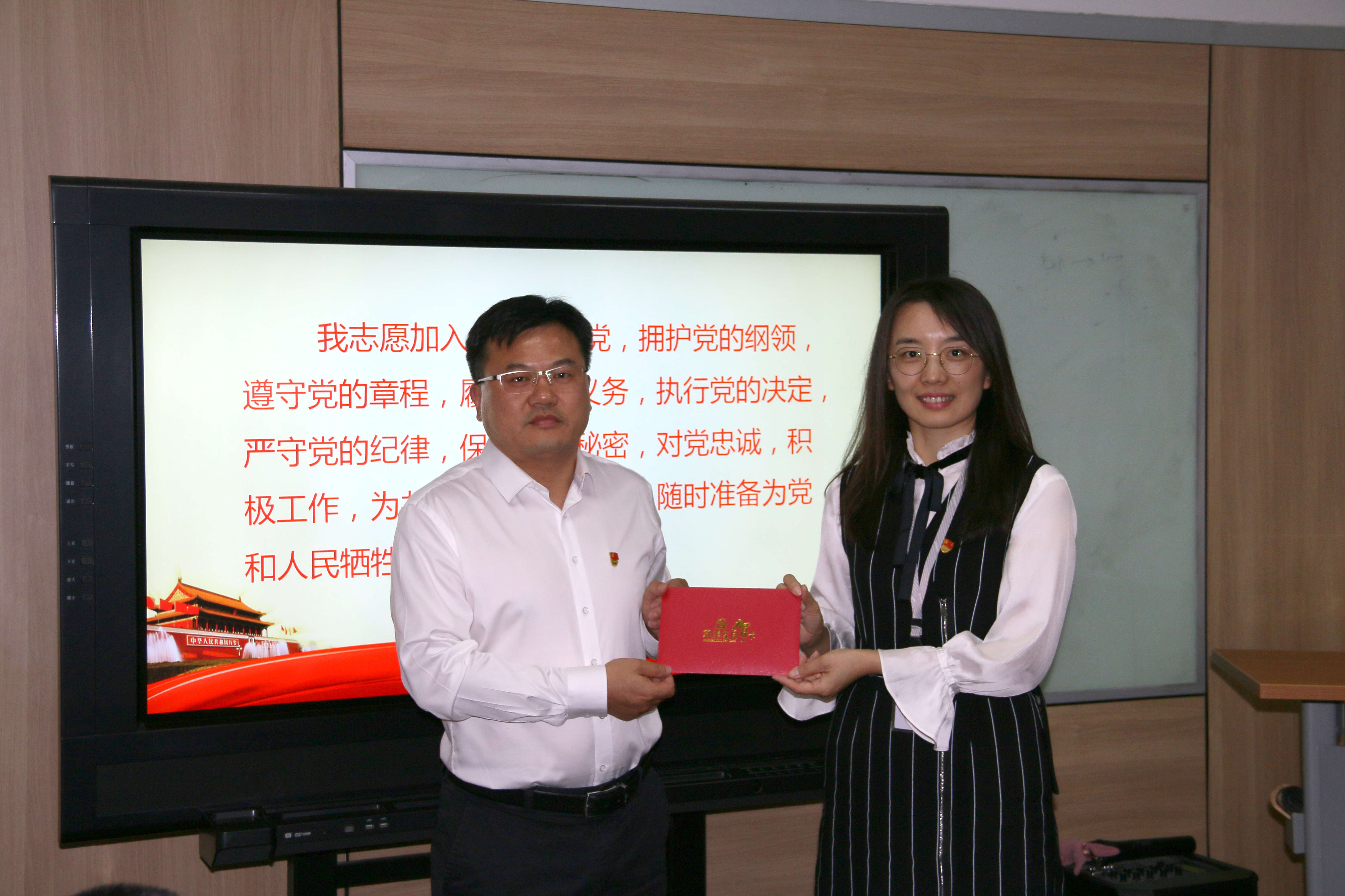随后,党总支书记王萌带领党员同志们重温入党誓词,并向党员同志赠送“政治生日”贺卡。